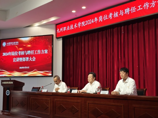 5月31日下午,我校召开2024年岗位考核与聘任工作方案宣讲暨部署大会。理事长曹竟成、党委书记吴永平、校长朱开永出席会议并在主席台就坐,常务理事侯新惠、常务理事张建委、副校长杜蜀宾、党委副书记张超以及全体教职工参加会议。会议由曹竟成主持。 会上,校长朱开永就2024年岗位考核和聘任工作方案进行宣讲,详细解读了指导思想、基本原则、考核范围、聘任期限、组织领导、考核办法、聘任程序、日常安排以及争议处...