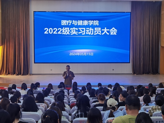 为加强医学专业的实习教育与管理工作,5月15日,我校医疗与健康学院在学术报告厅召开2022级学生临床实习动员大会。医疗与健康学院主要负责人、有关教师以及2022级全部实习生,共850余名师生参加活动。会议就2022级护理和康复治疗技术专业的临床实习进行动员,明确了实习安排、实习任务、学习目标、考核要求和注意事项等方面内容,说明了护考、“专接本”考试、毕业考试等方面工作安排,强调了实习的重要性、严肃性以及增强安全防范...