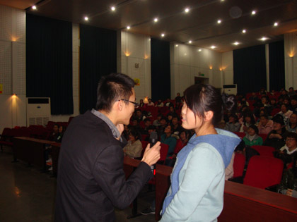 经管系举行“信念的力量:英语助我成功”讲座 为了在2011级新生中树立良好的班风,促进大一学生形成良好的学风,我系于 讲座由英语语言文学硕士、博士堂教育全国巡回励志演讲主讲老师刘梦涵主讲,他是希望翻译公司(全国连锁)创始人、博士堂教育合伙创始人、中国翻译协会会员、徐州翻译学会理事,并获得2005年西部志愿者银牌奖章,有着很丰富的英语交流和教学经验。 演讲过程中, 讲座接近尾声时, 此次英语讲座不仅可以带动我系学生对英语的积极性,还能提高学生们对英语的兴趣,纠正大部分学生对英语错误的学习方法,是一次让人受益匪浅的讲座。主讲人会用双语演讲以及其幽默诙谐的演讲方式使同学们对英语产生浓厚的兴趣。让同学们受到极大的鼓舞,留下了深刻的印象,重新对学习英语充满信心,学习英语不再困难! (李兆亚)