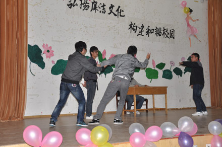 经管系“弘扬廉洁文化,构建和谐校园” 廉洁校园文化周活动圆满落下帷幕 为了迎接全省第五届“校园廉洁文化周”活动,经管系师生在院党委的统一部署下,系党支部、团总支于2011年10月27日-11月10日组织学生开展了“‘弘扬廉洁文化,构建和谐校园’廉洁校园文化周系列活动”。 活动分为板报评比、摄影、漫画、班级账务公开化、语言类节目五项内容。其中,板报评比、摄影、漫画、班级账务公开化等四项评比于11月9日下午14:30在204会议室进行,参赛的所有摄影、漫画、账目作品全部展示,院党委张超、魏华老师及经管系全体教职工担任评委参与评比。 舞台背景墙上,一朵朵清新淡雅、出污泥而不染的荷花映衬着“弘扬廉洁文化,构建和谐校园”让人耳目一新。“廉洁自律树正气,和谐经管促发展”的条幅悬挂于会场上方,烘托了会场气氛。 经过预赛,共有8支队伍晋级决赛。决赛现场,同学们认真的演绎着各种角色,让人痛恨的贪官污吏、正气凛然的人民公仆、行贿受贿的不法商人、遵法守法的官员家属……细腻的将人物的心理活动演绎出来,虽然参赛选手多是首次登台,但是他们赛前努力的排练,倾情而真挚的演出,却赢得了现场观众一次次热烈的掌声。真挚的情感让现场的观众无不动容,深刻的将“廉洁自律”刻入每位师生的脑海里。 经过激烈的比赛,经管系会审11-3班获得一等奖,金融11班获得二等奖,营销11班获得三等奖,会审11-4、会审11-1班获得最佳创意奖,会电11、会审11-2、会审10-2班获得优秀组织奖。张超老师、魏华老师和袁虹老师分别为获奖班级颁奖。 大赛接近尾声之时,院党委