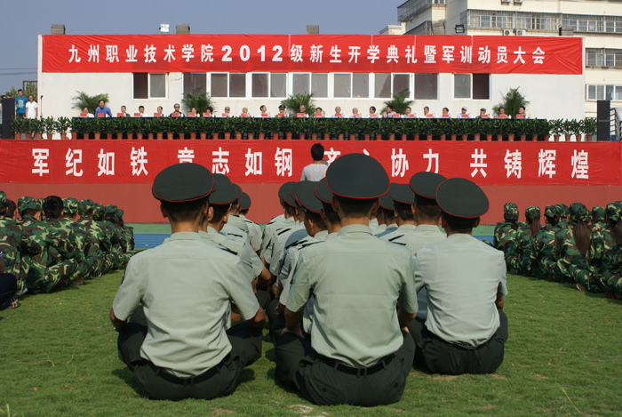 承训部队首长周宗杰同志、军训教官代表王会强同志在讲话中表示要与参训学生同甘共苦,以昂然的精神状态、饱满的工作热情投入到训练中。在训练过程中,要做到“怡尽职守,严格要求自己,以良好的军人形象展示在学生面前,高标准、严要求、圆满完成军训任务,为九州学院领导交上一份圆满的答卷。