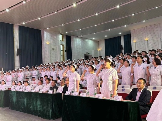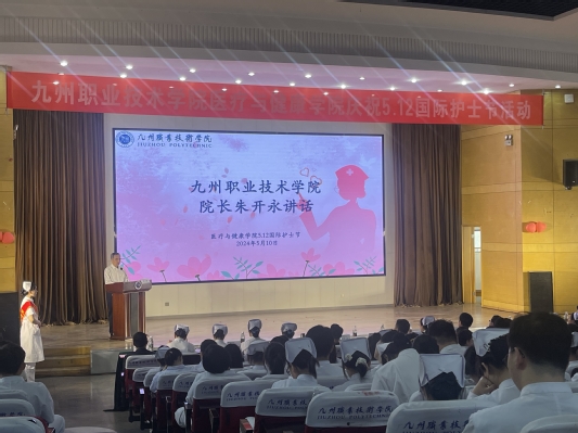 首先,校长朱开永致辞。他指出,广大学子作为当代的有为青年,要有理想、有信念、有情怀、有担当,厚植家国情怀,用脚步丈量祖国大地、练就过硬本领,向英雄和榜样学习、向前辈和老师学习,使白衣天使的职业价值和独有魅力在“善”的事业中书写非凡的新篇章。他寄语即将离校实习的2022级学子,希望同学们牢记“敬畏生命,救死扶伤,健康所系,性命相托”的理念,用心践行南丁格尔誓言,巩固与加强理论知识,锤炼与提升操作技能,不断提高自己的专业素养和技能水平,早日成为一名优秀的医护工作者,竭尽所能为患者提供更加优质、高效的医疗服务,在平凡的岗位上书写不平凡的人生。