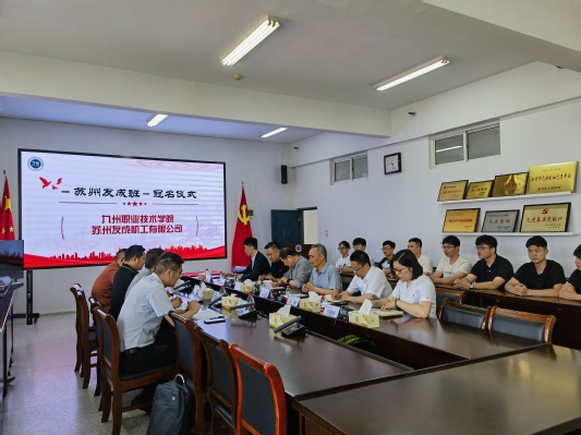 授牌仪式上,校企双方深入座谈交流,在人才培养、项目合作、实习就业、产业服务以及学生就业等方面达成了一致意见,纷纷表示将以此次为契机,加快“产”“学”“研”的深度融合,努力实现宽领域、高层次的合作。随后,在与会人员的见证下,举行了“苏州友成冠名班”授牌仪式