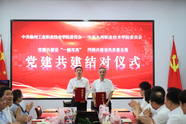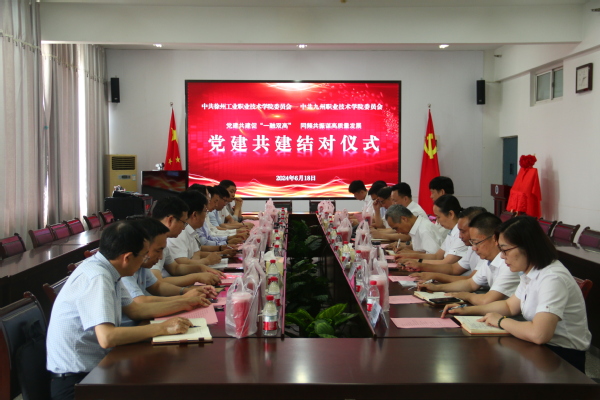 为深入贯彻落实党的二十大精神,创新党建工作模式,深化培育新质生产力,推动高质量发展培养急需人才,更好地服务地方经济发展,6月18日下午,中共太阳成集团tyc234cc委员会和中共徐州工业职业技术学院委员会举行共建结对仪式,主题为“党建共建促‘一融双高同频共振谋高质量发展”
