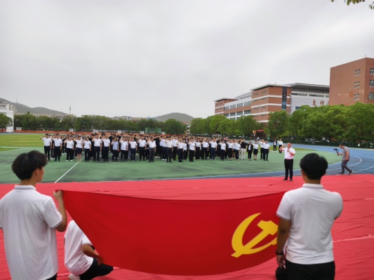 6月24日清晨,我校举行“迎七一 升国旗 温誓言”主题活动庆祝中国共产党成立103周年,进一步教育引导广大党员和青年学党史、强信念、跟党走,厚植爱党、爱国、爱校的情感,凝聚强国建设和民族复兴磅礴力量。