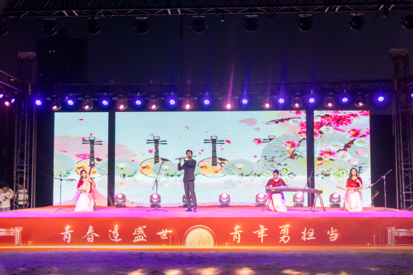 夜幕降临,灯火初上,星辰同光,晚会在热切的期盼和热烈的掌声中拉开帷幕。整场晚会以“成长”“挺膺”“担当”三个主题篇章贯通串联,通过歌曲、舞蹈、乐队演奏、器乐演奏等多种表现形式,将传统经典、现代律动、风华国乐相融合,师生们尽情展现,青春放歌,唱响新时代青年的初心如磐,舞动泱泱中国的民族自豪。跳动的音符、优美的韵律、华丽的舞蹈带来了时空的穿越,为现场观众带来一场美轮美奂的视听盛宴。