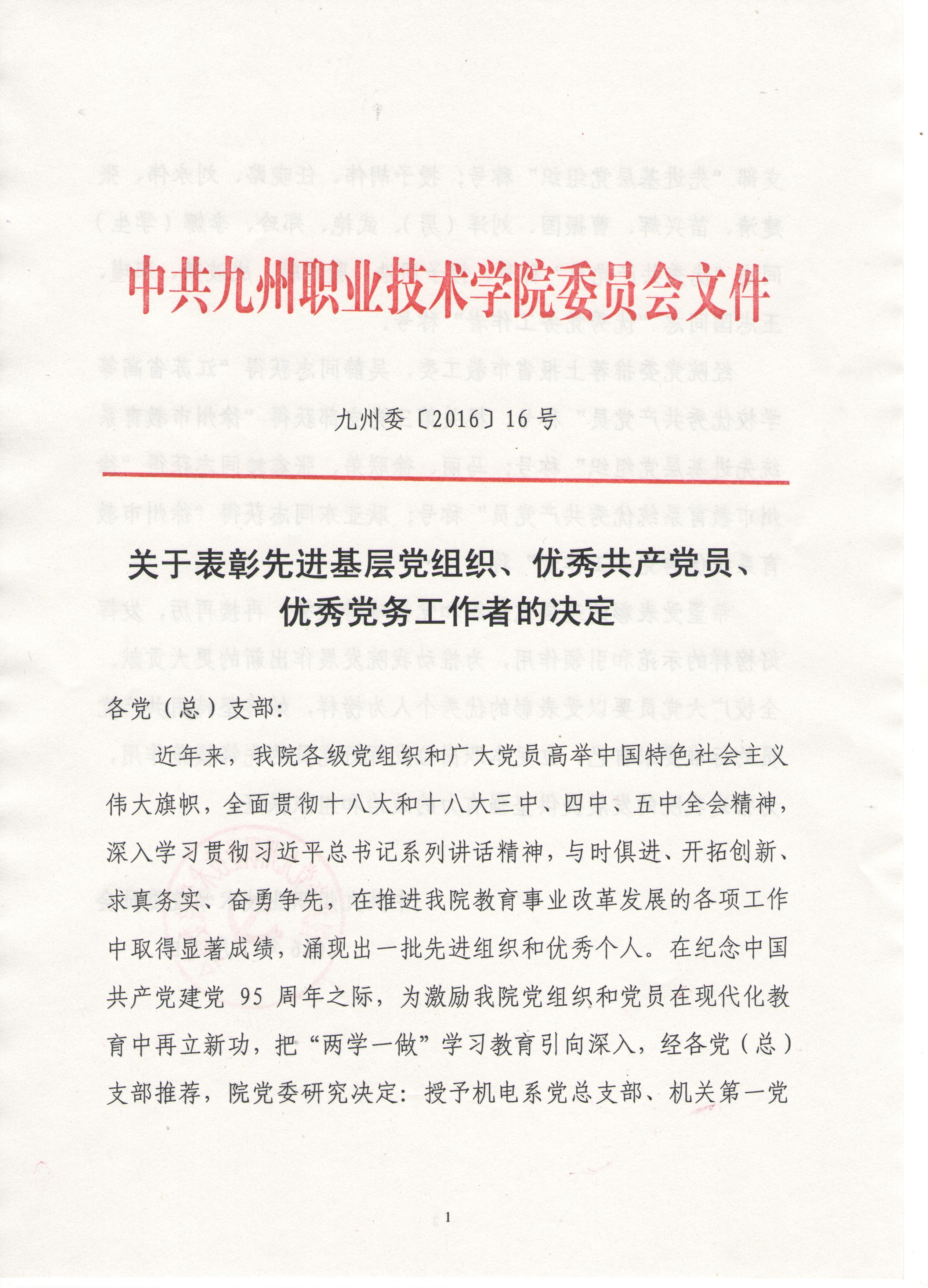 关于表彰先进基层党组织、优秀共产党员、优秀党务工作者的决定