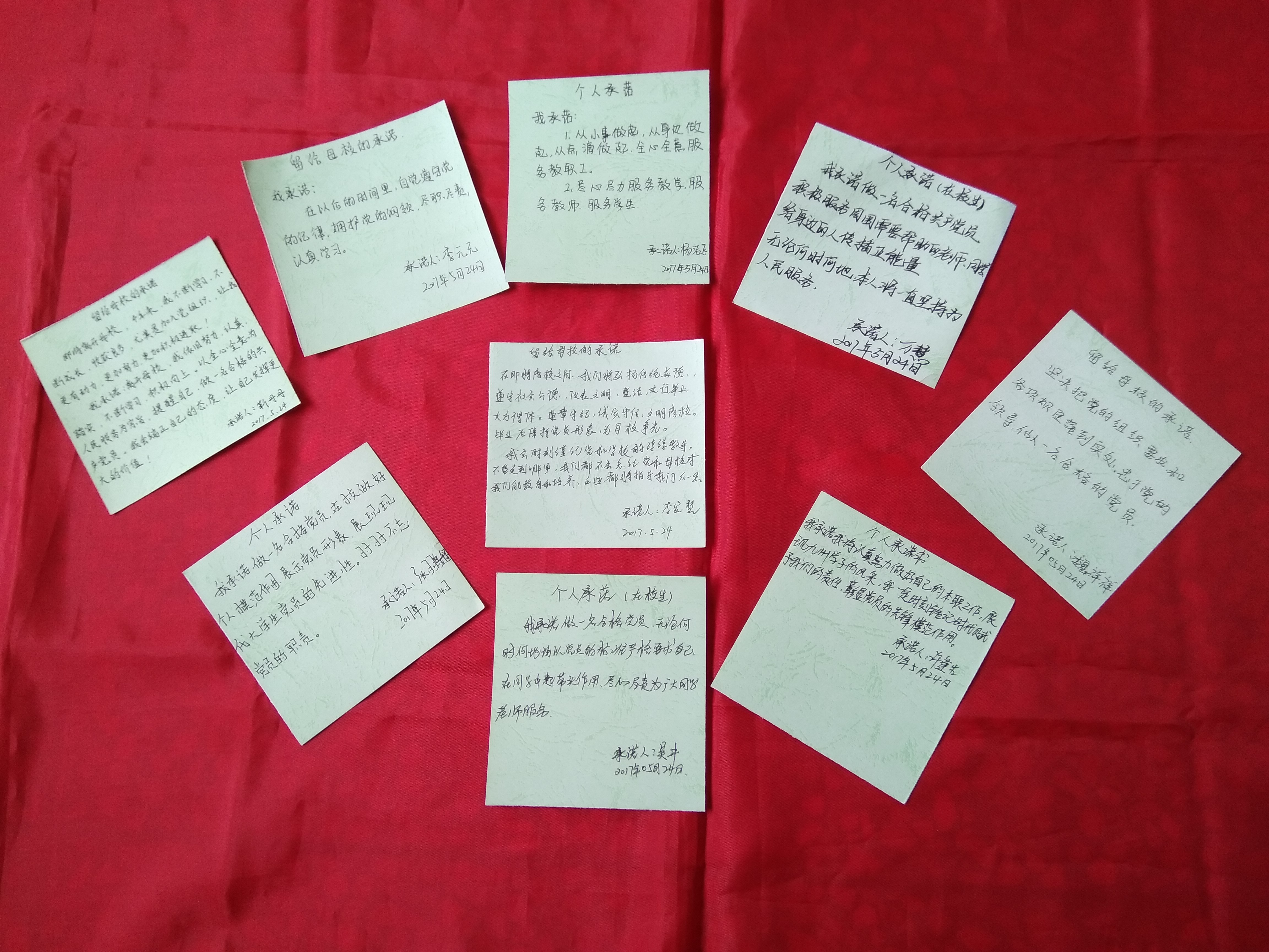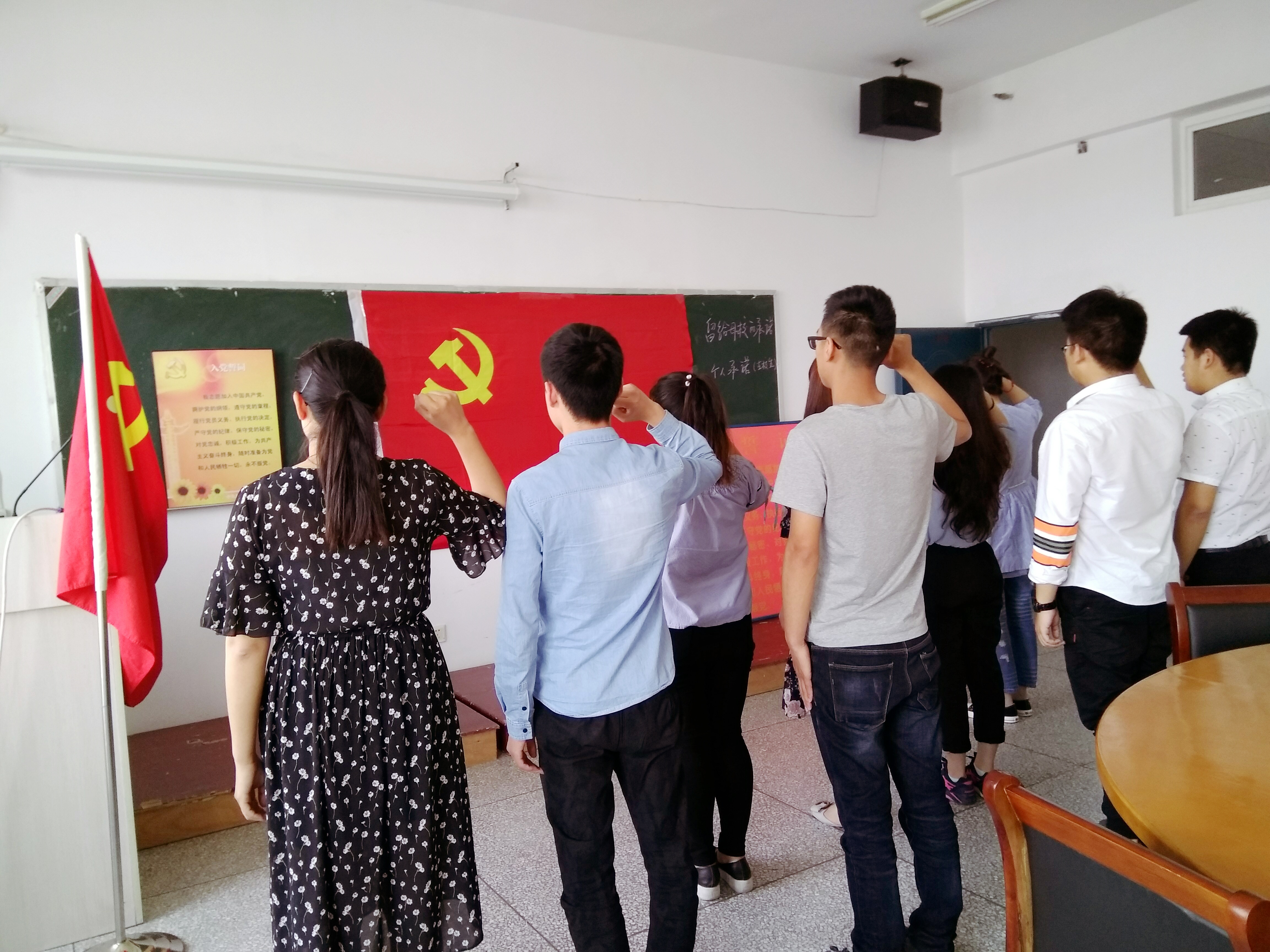 学生党员开展了“重温誓词,信守承诺,为九州争光,为党旗添彩”活动。全体学生党员面向党旗举起右手,庄严地进行了宣誓。毕业生党员以明信片的形式书写了“留给母校的承诺”,留下对母校的临别之言,站好最后一班岗,带领其他毕业生积极配合学校做好离校工作。在校的学生党员书写了“个人承诺书”。