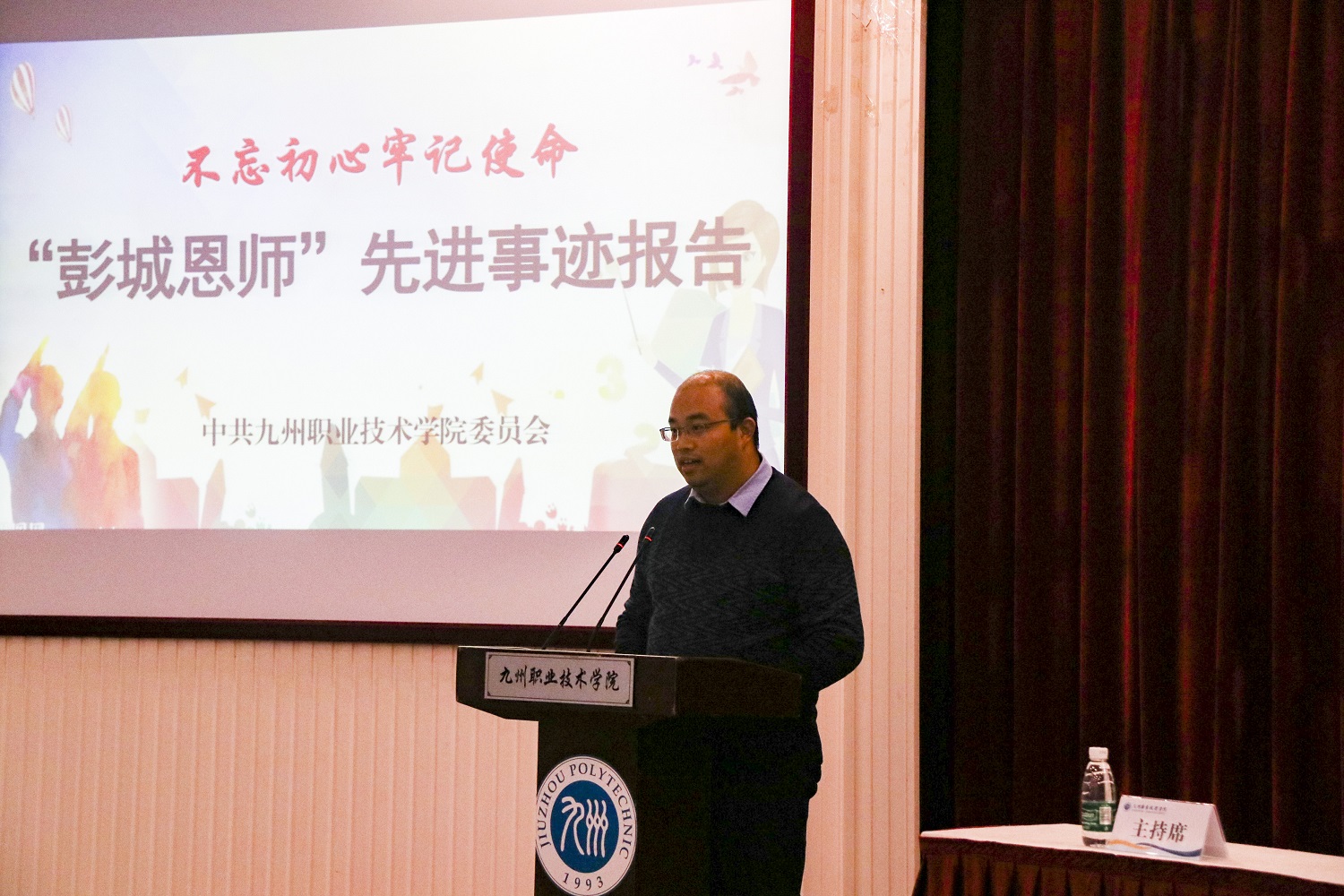 报告会同时聆听了获评今年徐州市“彭城恩师”的我院土木工程系教师团队先进集体,机电工程系刁海军老师先进个人讲述的先进事迹。土木工程系主任宋功业教授和机电工程系刁海军老师用平实的言语、生动事例、感人的故事讲述了他们各自的先进事迹。