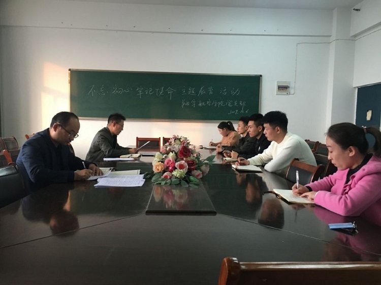 编者按:自学院开展“不忘初心,牢记使命”主题教育以来,各基层党支部按照学院党委制定的实施方案,积极组织教职工特别是党员开展形式多样的教育活动,如学生工作党支部、行政工作党支部在进行教育,组织党员面对党旗举行重温入党宣誓仪式。现将本周各党支部组织党员开展主题教育情况以图片宣传的形式进行报道。