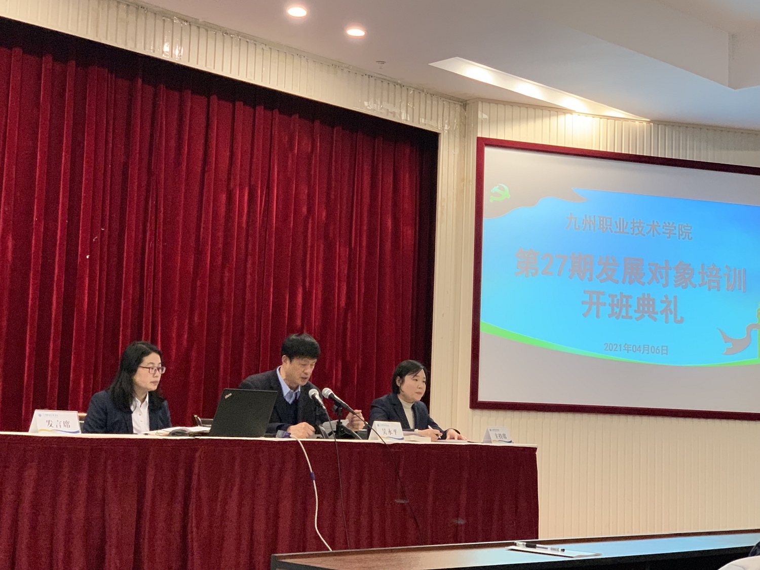 4月6日晚,我院第二十七期党员发展对象培训班开班典礼在主南二报告厅举行。学院党委书记吴永平出席并讲话,学院党委委员、各党支部书记和全体学员参加开班典礼。