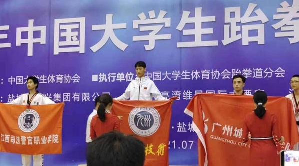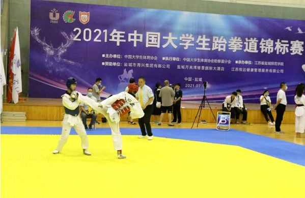 据悉,2021年中国大学生跆拳道锦标赛7月22日在盐城师范学院新长校区体育馆拉开帷幕,大赛共吸引来自清华大学、北京大学、浙江大学、南京大学、南开大学、厦门大学等全国138所高校、1100余名运动员参加。我院仅派出一名教练和一名选手参加本次比赛,教练全程做好保障与指导,学生奋力拼搏,不畏强敌,勇夺冠军。