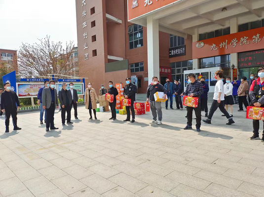在慰问现场,朱开永院长首先代表学院党政班子向坚守在校园抗击疫情一线的工作人员表示诚挚感谢并致以亲切问候。他指出,疾风知劲草,板荡见忠诚!大家放弃了休息、放弃与家人团聚的机会,舍小家为九州,保障了校园平安,充分体现了九州人的责任与担当。他叮嘱大家在认真做好校园防疫工作的同时注意好个人的防护,保证身体健康。他强调,学院终把全体师生员工生命安全和身体健康放在第一位,将继续贯彻落实好疫情防控常态化的部署和要求,筑牢校园安全屏障,守护师生安康,维护校园稳定。