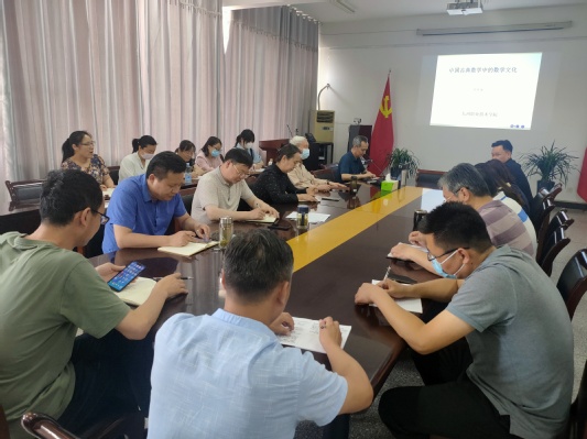 6月1日下午,学院干部培训班第三讲“中国古典数学中的数学文化”在主913会议室举行。党委副书记、院长朱开永教授做专题报告。理事长侯新惠、创办人陈引亮亲临现场与全体学员一起参加学习。