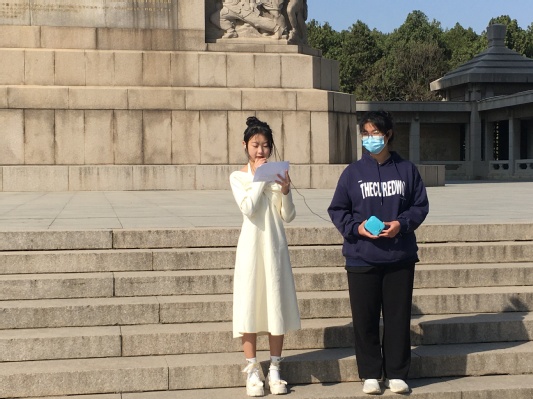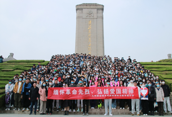 在淮海战役烈士纪念塔下,九州学子怀着崇敬的心情整齐列队、静静肃立、庄严俯首,向革命先烈默哀三分钟。学生代表护理22-1班李佳依同学发言,表达了向革命先烈的敬意和缅怀之情。在淮海战役纪念馆里,师生共同伴随着工作人员的讲解参观学习,时时感动于一件展品背后发生的真实故事,受教育于这古今中外战役史上最为动人的篇章。