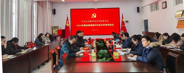 2024年1月5日上午9:30,学院召开2023年第四季度意识形态工作分析研判会议。党委委员,各支部书记、副书记、宣传委员,党委各工作机构主要负责人以及全体中层干部参加会议。会议由党委书记吴永平主持。