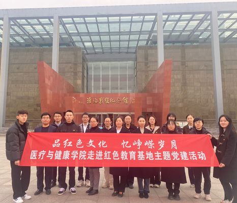 为深入学习宣传贯彻党的二十大精神,弘扬伟大建党精神,重温党的百年光辉历程,追寻革命先辈的光辉足迹,11月15日下午,医疗与健康学院党支部举行“品红色文化,忆峥嵘岁月”走进红色教育基地主题党建活动,组织参观红色教育基地—淮海战役纪念馆,学习解放战争历史,缅怀革命先烈。