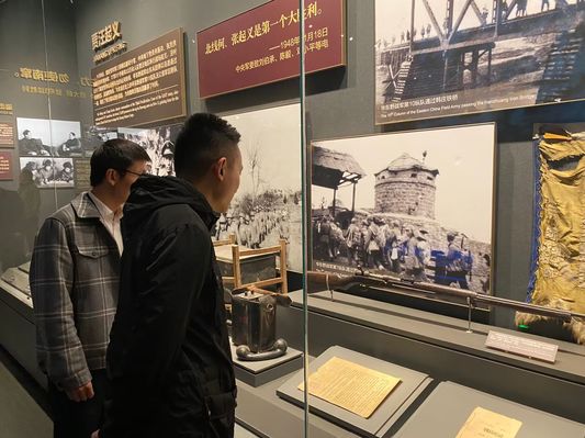 在淮海烈士纪念馆,党员们跟随纪念馆讲解员的脚步,聆听了一个个战斗故事,驻足在纪念馆一张张承载历史的照片、一件件饱经风霜的文物,近距离感受烽火岁月里中国共产党带领人民军队为人民而战的情怀和勇气。