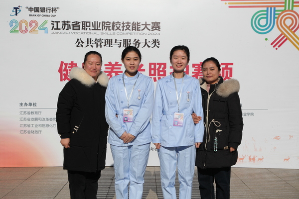 1月12日至15日,2024年江苏省职业院校技能大赛高职组“健康养老照护”赛项在江苏省医药职业学院举行。本次比赛由江苏省教育厅、江苏省发展和改革委员会等16个部委主办,来自全省23所高职院校45名选手同场竞技。我校医疗与健康学院2021级护理4班张华燕同学和2022级护理5班高子涵同学分别获大赛二等奖,朱爽爽和王平芳两位老师获得优秀指导教师奖。