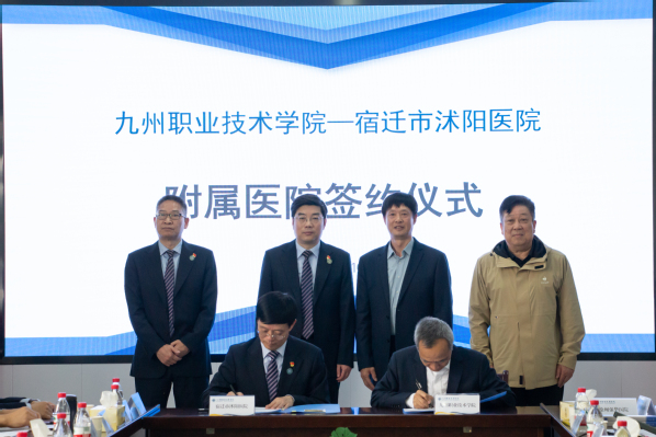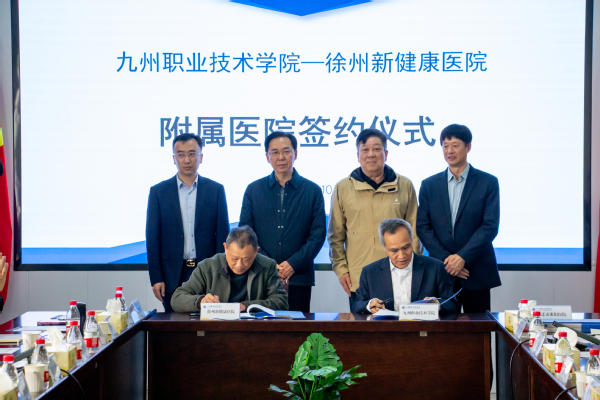 4月10日下午,学校与徐州新健康医院、宿迁市沭阳医院和徐州强华医院举行共建附属医院签约仪式。徐州新健康医院党委书记李明,院长助理甄宗礼,科教处处长李征;宿迁市沭阳医院董事长、院长、党委书记周业庭,常务副院长朱宝林,副院长王光胜,副院长乙军,院长助理、党政办主任陶雪年,党政办副主任邱添;徐州强华医院副院长范海鹰,副院长刘申,副院长陈飞,医务科科长乔雅莉;我校理事会理事长曹竟成、党委书记吴永平、校长朱开永、副校长杜蜀宾以及党政办公室、教务处、医疗与健康学院有关负责同志、医学专业教师代表参加仪式。仪式在主楼913会议室举行,由杜蜀宾主持。
