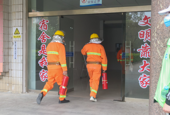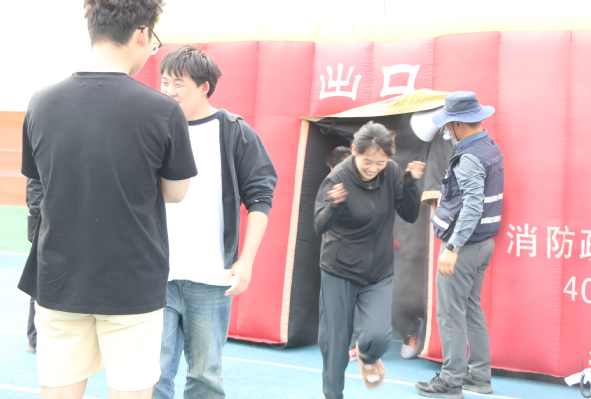随后,现场师生分组先后进行了火场逃生演练、油盆灭火实战演练和宿舍火灾应急疏散及灭火演练。在火场逃生演练环节,大家进入模拟逃生屋内,在仿真烟雾弹、模拟真实火场环境等条件下,亲身体验了遇到火灾之后的逃生过程;在油盆灭火实战演练环节,大家利用灭火器进行灭火演练,熟练掌握了油盆灭火技术要点;在学生宿舍9号楼,大家按照预定方案有序进行了火场疏散及灭火模拟演练,达到了预期的效果。
