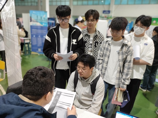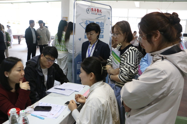 招聘会现场,毕业生们手持精心准备的简历,主动与招聘单位洽谈交流,咨询关心工作内容、薪资待遇、招聘程序等方面内容,积极推荐自己,认真投递每一份简历;各单位招聘负责人热情接待,耐心介绍单位情况,细致讲解招聘条件,认真对待每一位应聘者;招聘会的工作人员与招聘单位深入交流,详细了解岗位需求,为应聘学生提供细致地现场指导;学生志愿者们活跃在现场,为每一位来访者提供工作指引和志愿服务。现场氛围热烈。