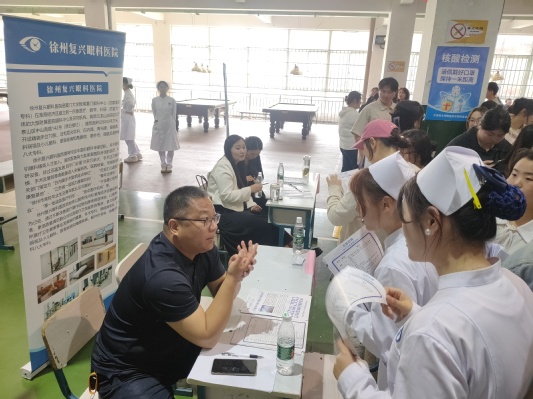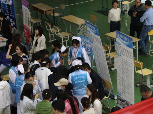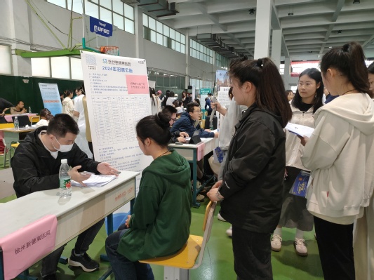 本次活动由医疗与健康学院、校团委、医疗与健康学院关工委共同主办,汇集了来自徐州新健康医院、沭阳医院、徐州强华医院、徐州博济康复医院、连云港灌南仁慈医院、盐城德馨医院、宿迁市康复医院、铜山中医院、徐州星晨妇儿医院等40余家医护类用人单位,提供了450余个实习和就业岗位。招聘单位以医院为主,专业技术要求强,就业岗位质量高,吸引了1000余名2024届医学专业毕业生前来求职应聘,更有在徐其他医护类高校的应届毕业生慕名前来参加此次招聘会。