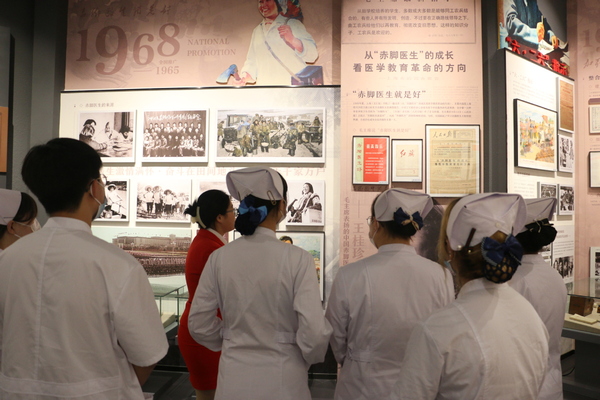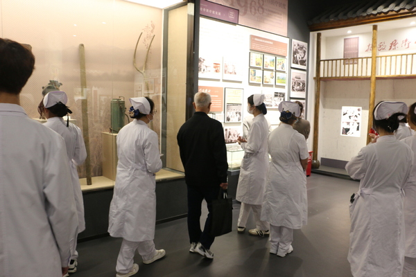 在赤脚医生博物馆,一幅幅珍贵的老照片、一件件老物件形象再现了赤脚医生“一肩药箱一肩锄,银针草药把病除,出诊愿翻千层岭,随叫随到昼夜劳”的工作场景。通过讲解员的介绍,我校师生深入学习了赤脚医生第一人王桂珍、合作医疗之父覃祥官、农村卫生事业三大法宝守护人张自宽等人的感人事迹,真切感受赤脚医生“扎根大地、痌瘝在抱、佑护寒黎、医心赤诚”的精神。