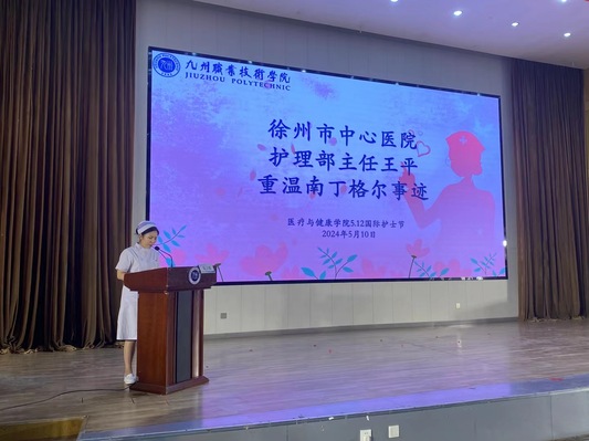 在第113个国际护士节来临之际,为弘扬南丁格尔救死扶伤的人道主义精神,弘扬中华民族优秀的传统文化,激励广大护理师生在新时代、新征程中勇毅前行,同时也为即将奔赴医疗一线进行实习的2022级学生加油鼓劲, 5月10日下午,我校在学术报告厅隆重举行纪念“5.12”国际护士节暨授帽仪式。本次活动以“党建引领聚合力 白衣天使担使命”为主题,由医疗与健康学院牵头承办。学校理事长曹竞成,党委书记吴永平,校长朱开永,副校长杜蜀宾,党委副书记张超出席,各部门负责人和相关老师参加活动。仪式特别邀请了长期以来关心和支持我校医学专业发展的各单位领导:徐州市护理学会理事长夏静、徐州市第一人民医院护理部主任沈洁、徐州市第三人民医院护理部主任郭春玲、徐州市中心医院护理部主任王平、徐州市中医院护理部主任黄秀、徐州矿务集团总医院护理部主任宋红、太阳成集团tyc234cc附属徐州新健康医院护理部主任李红、太阳成集团tyc234cc附属宿迁沭阳医院护理部主任张华华、徐州生物工程职业技术学院卫生健康学院院长丁梁斌以及徐州医药高等职业学校护理系主任杜培培出席此次活动。