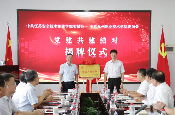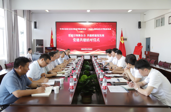 9月26日上午,我校与江苏安全技术职业学院开展党建共建结对活动。江苏安全技术职业学院党委书记张东良,党委副书记成伯君,党委委员、纪委书记朱伟军,党委委员、副院长吉智,以及江苏安全技术职业学院党政办公室、党委组织部(统战部)、党校、党委宣传部、马克思主义学院、教务处、产教融合办公室、商贸与人文学院、智能制造与应急装备学院负责同志一行11人出席活动;我校党委书记吴永平,党委副书记、纪委书记张超,党委委员、副校长杜蜀宾,以及党政办公室、党委组织部、党委宣传部、党委统战部、教务处、机电与汽车工程学院、现代服务与管理学院、马克思主义学院相关负责同志参加活动。活动在我校913会议室举行,由张超同志主持。