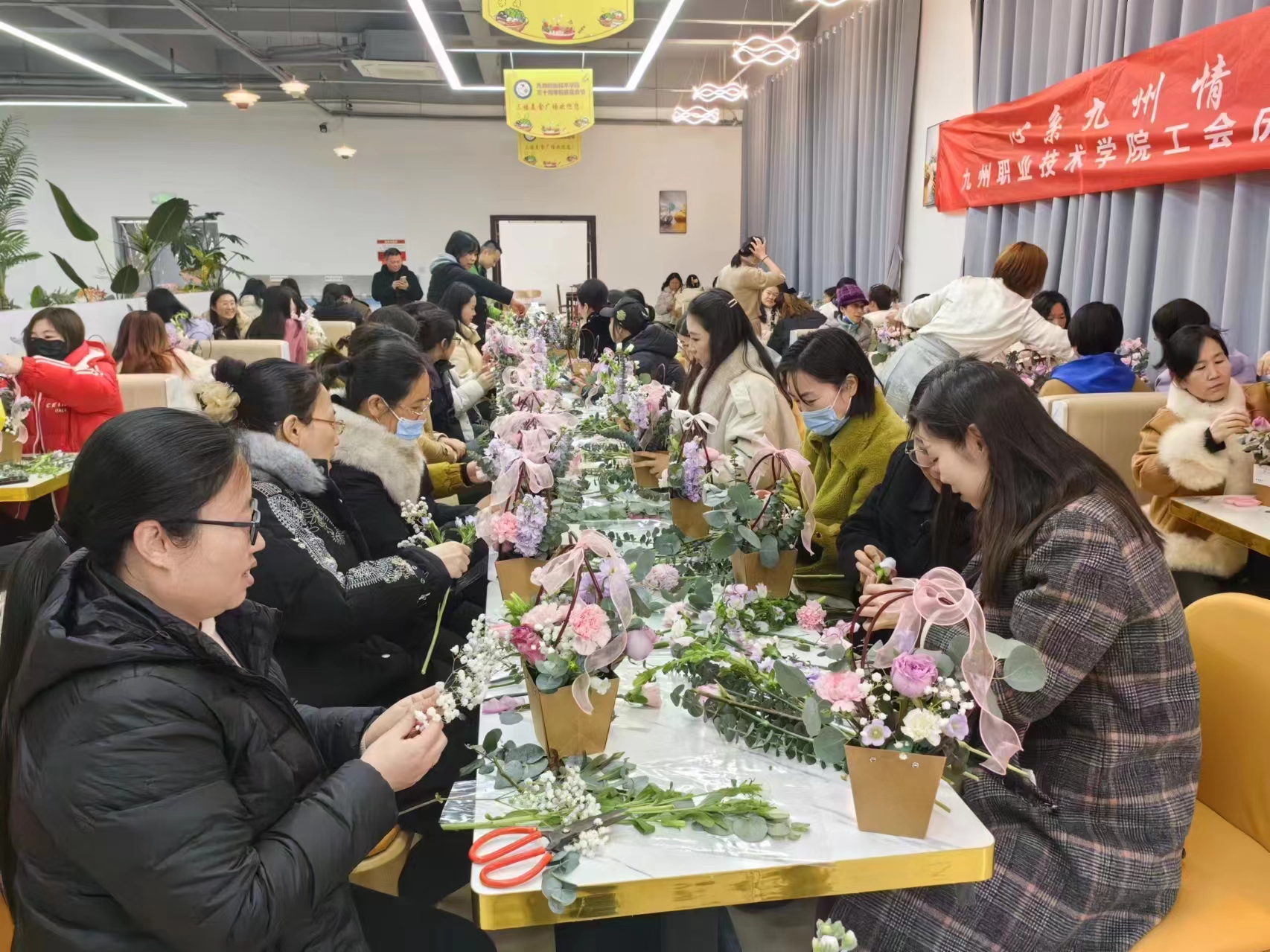 阳春三月,花香四溢。进一步丰富女教工的精神文化生活,提高美学素养,3月6日,在“三八”国际妇女节来临之际,太阳成集团tyc234cc工会在教工餐厅开展以“心系九州情,百美展风华”为主题的DIY插花活动,全院一百多位女教工欢聚一堂。
