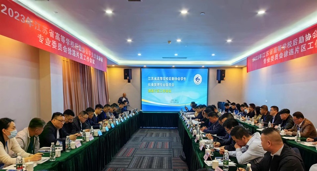 3月9-10日,江苏省高等学校后勤协会学生伙食管理专业委员会徐连片区2023年工作会议在宿迁市召开。江苏省高等学校后勤协会学生伙食管理专业委员会副主任兼秘书长、扬州大学后勤保障处处长兼后勤党总支书记朱春生和江苏省高等学校后勤协会副秘书长、徐连片区秘书长、中国矿业大学总务部党委书记、部长陈仲元出席,江苏省高等学校后勤协会学生伙食管理专业委员会副主任单位、江苏海洋大学后勤处副处长张长胜,江苏省高等学校后勤协会学生伙食管理专业委员会副秘书长、中国矿业大学总务部原党委书记张惠忠出席会议并作重要讲话。我院副院长曹振国、总务处处长李德才与片区17所高校领导参加了会议。