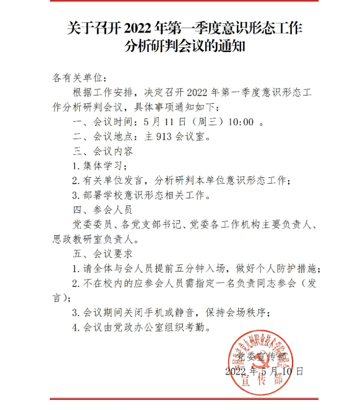 关于召开2022年第一季度意识形态工作分析研判会议的通知