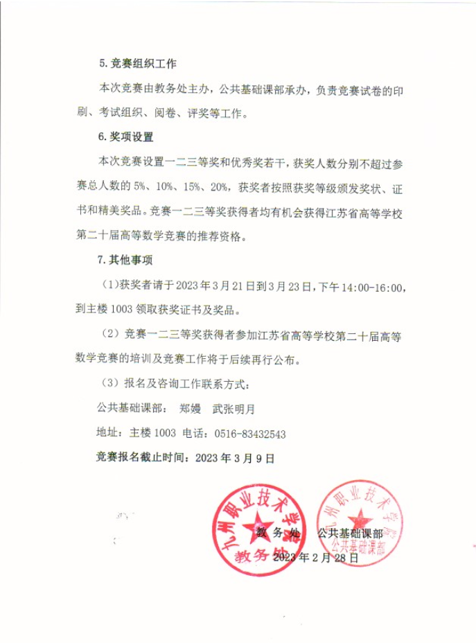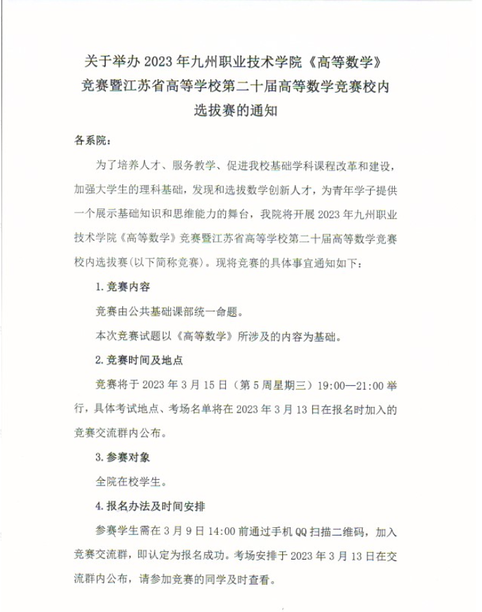 关于举办2023年太阳成集团tyc234cc《高等数学》竞赛暨江苏省高等学校第二十届高等数学竞赛校内选拔赛的通知