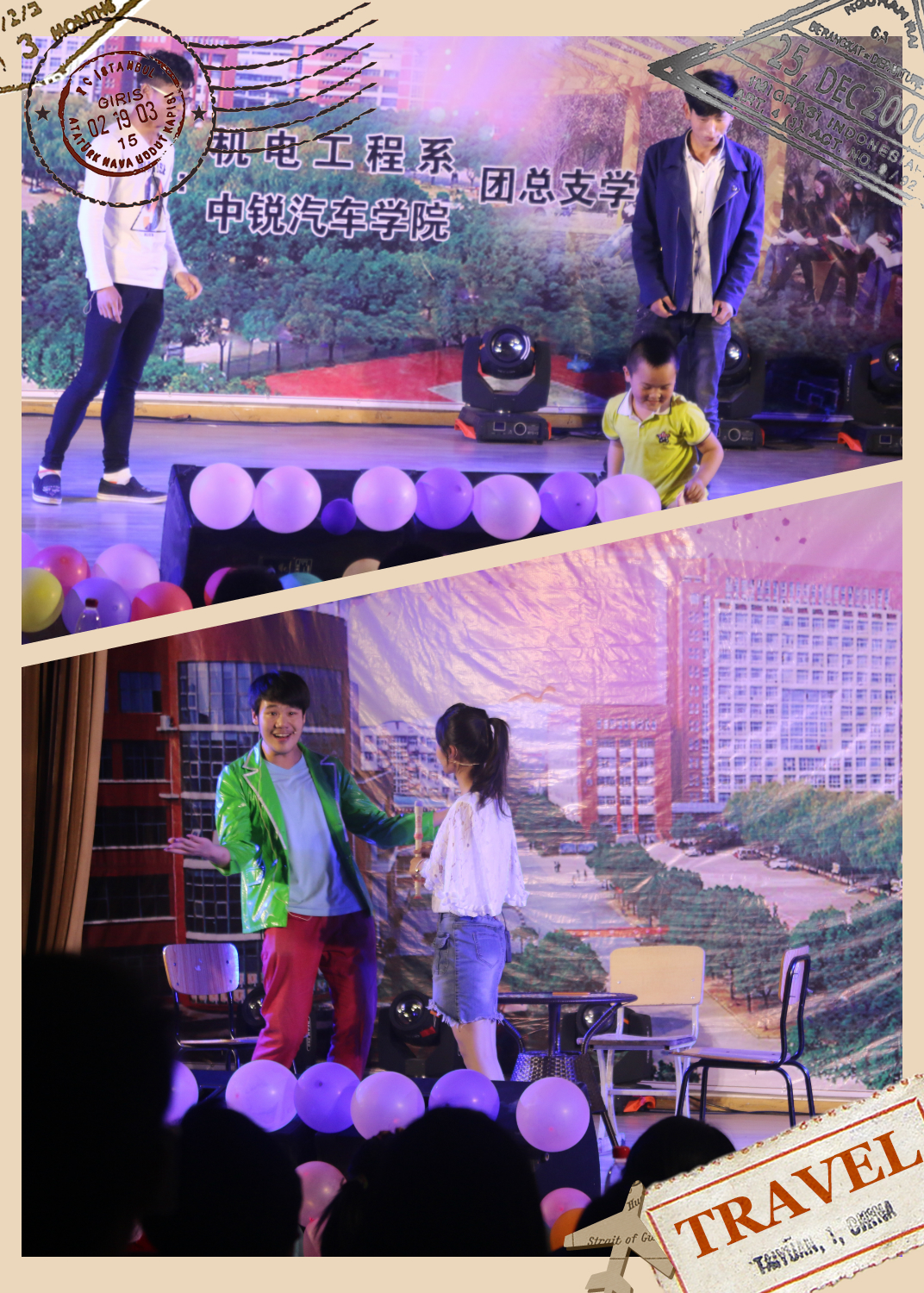 5月24日晚18点30分,学术报告厅流光溢彩,热闹非凡,机电工程系与中锐汽车学院联合在此举办了“九州扬帆青春续航”送毕业生晚会,本次晚会由两个系院的团总支学生会主办。常务副院长陈万平、副院长冯新平、党委副书记俞亚芹、学工处处长武艳、经济与管理系主任张道响、机电工程系主任陈自力及各部门的老师和与现场三百名师生共同观看了晚会。