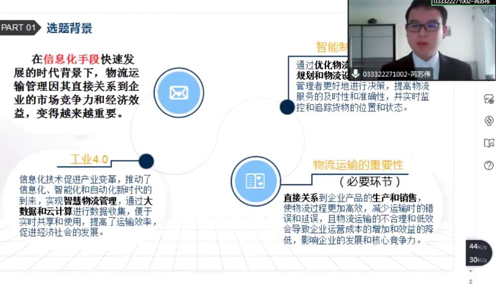 最后,在学生的研究态度方面,大部分学生都表现出了积极、认真的态度。他们认真准备答辩材料,积极回应评委的提问,展现出了良好的学术素养和精神风貌。然而,也有部分学生在答辩过程中表现得过于紧张或不够自信,影响了他们的表现。建议这些学生在未来的学习和研究中,更加注重自我调整和心态管理,增强自信心和表达能力,以更好地展示自己的研究成果和能力。