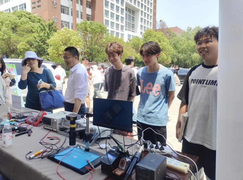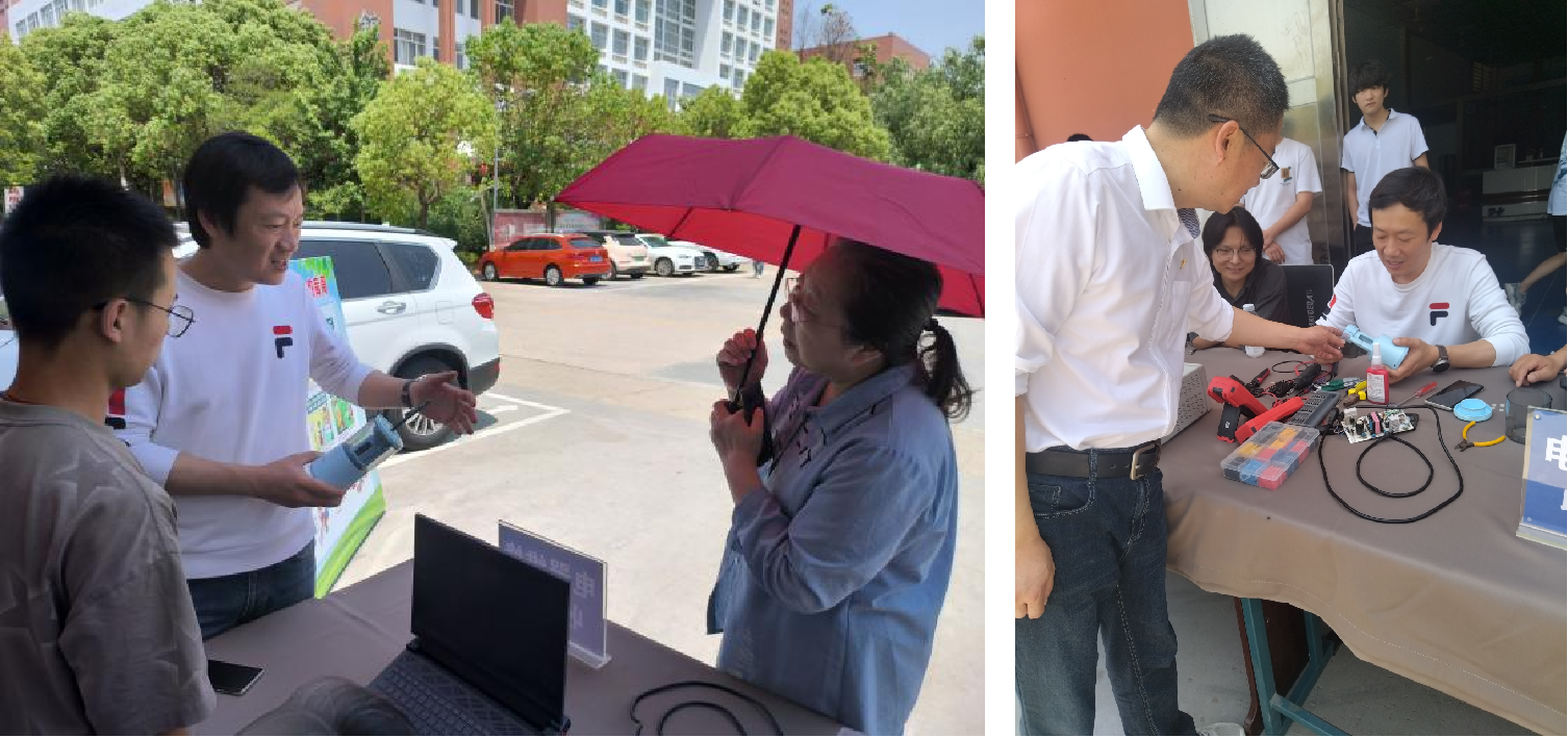 活动于5月17日上午10时许开始,虽然艳阳高照,但也抵挡不住师生们的热情。有前来咨询技能证书的作用及如何报考的学生,也有拿来出故障的扫地机器人和其它故障电器设备需要维修的,现场一片热闹景象。