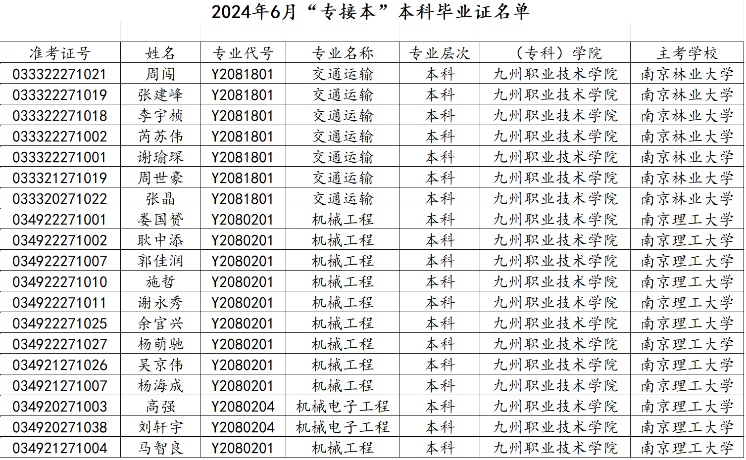机电学院2024年6月“专接本”毕业证、学位证领取名单