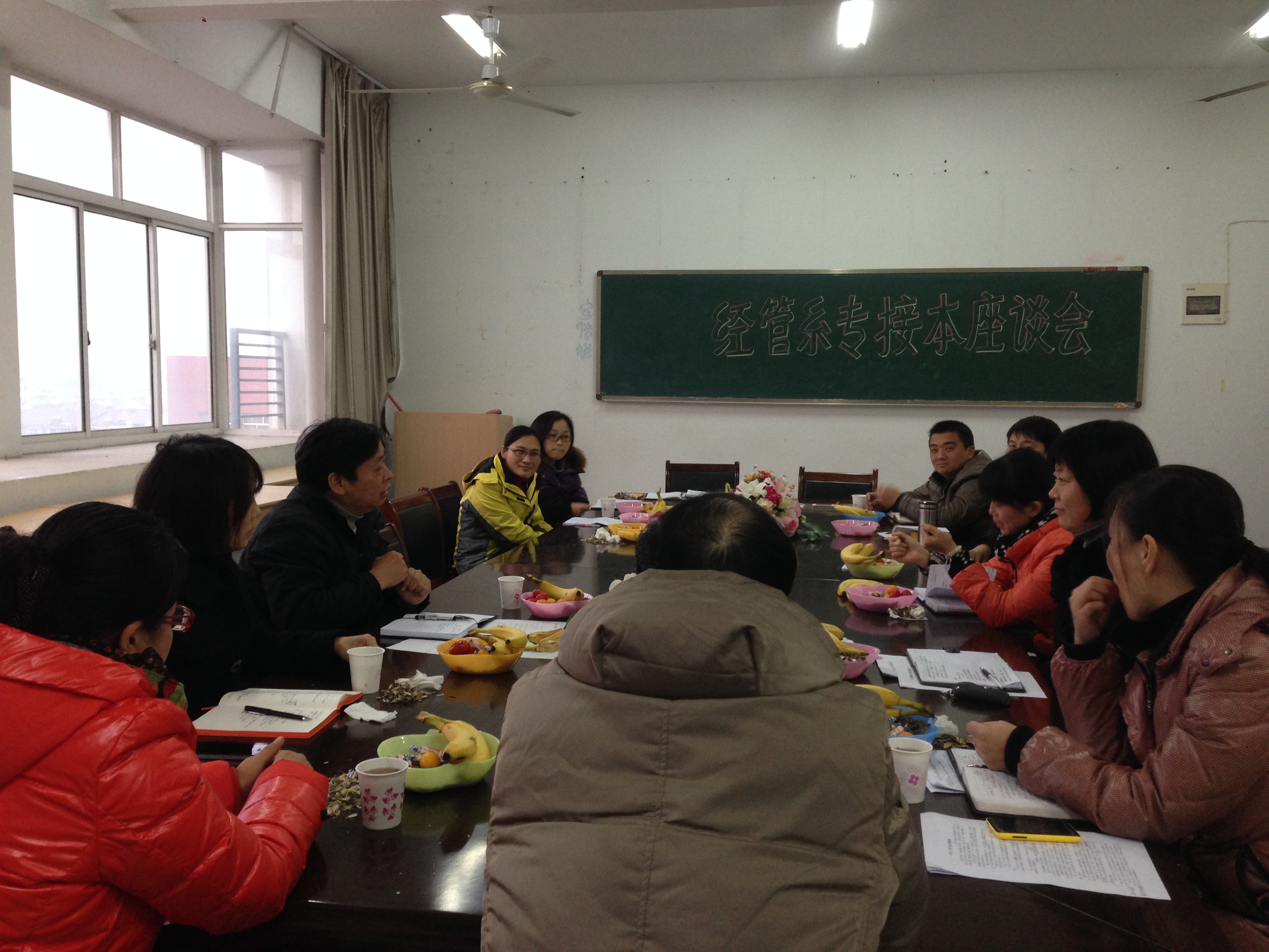 2013126日下午,我系召开“经管系专接本工作座谈会”,副院长冯新平、党委副书记俞亚芹莅临会场,刘畅书记主持会议,王道顺、张道响等多位专接本班级任课教师和班主任参加座谈会。