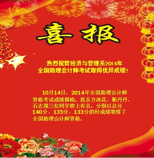 喜报:经济与管理系2014年全国助理会计师考试取得优异成绩
