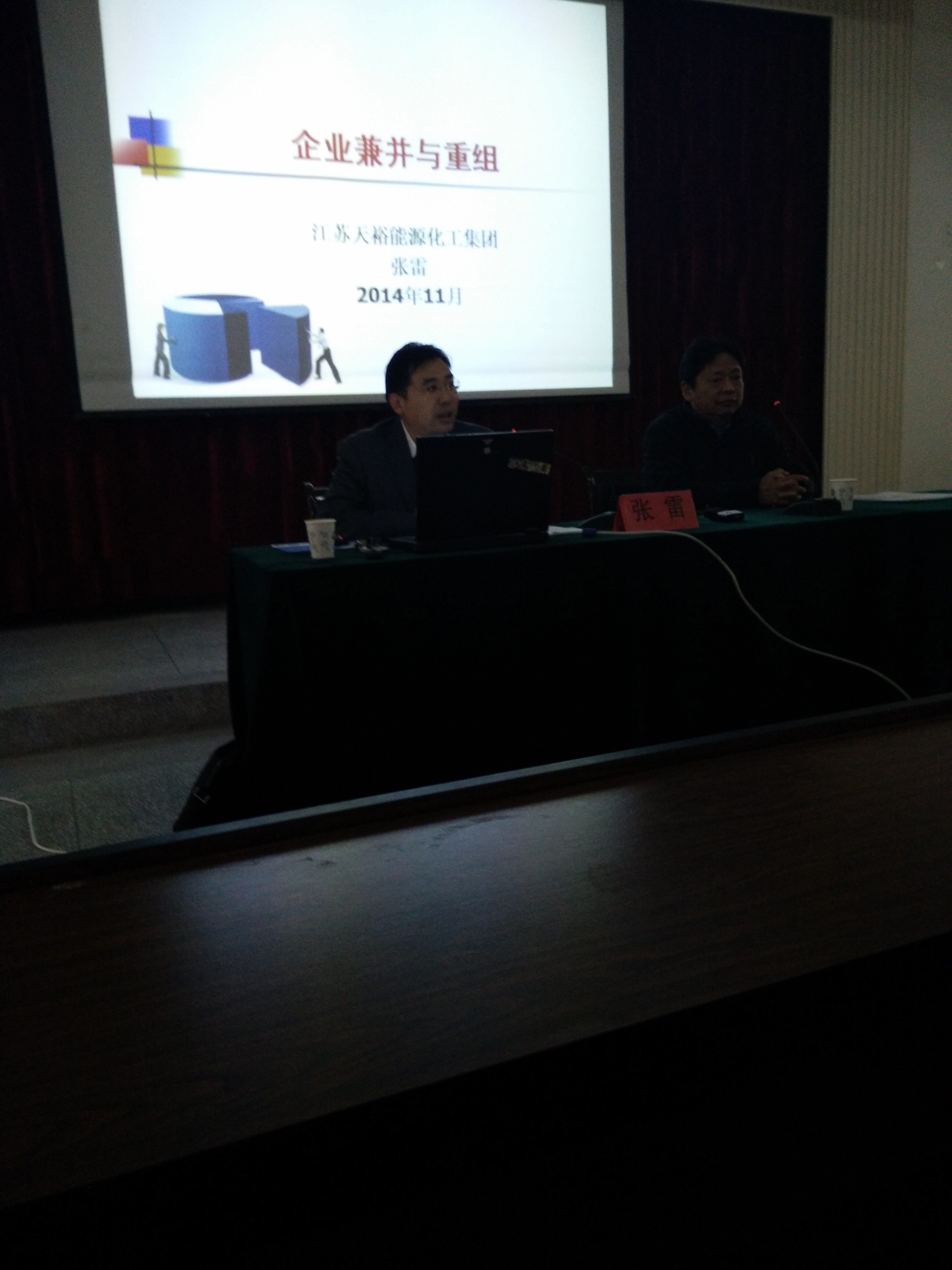 张雷副总裁首先以天裕集团的兼并重组为例;讲述了企业兼并重组的动机、方式、风险、操作程序等;其次指出兼并重组是促进企业实现资源整合,增强公司的盈利能力,实现产业升级和技术革新,提升企业的核心竞争力,实现企业的跨越式发展必有之路。企业兼并重组是企业最具戏剧性和最具吸引力的资本运作,同时又是一项严峻和艰辛的商业活动,金融活动。最后,紧扣报告主题提出企业兼并与重组中对人才需求分析,同时对在校学生提出几点希望和要求,勉励大家努力学好本领。