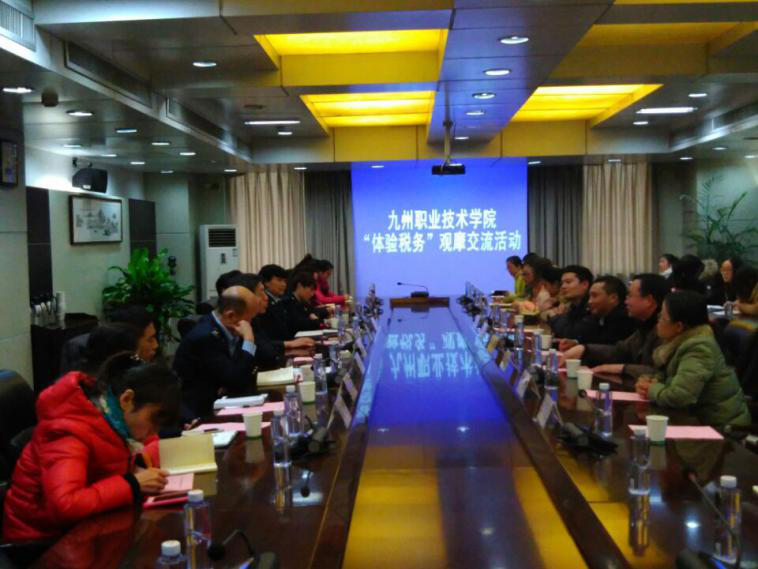 最后,朱局长带领大家来到7楼会议室参加此次教学观摩活动座谈会。座谈会由纳税服务局局长张宏博主持,会上市局党组成员、总经济师章春向大家介绍了近年来徐州地税在机构改革、纳税服务、税收宣传等方面的情况。我院教务处钱处长、系主任张道响分别就校企合作、专业建设、课程开发等方面做了发言,双方就签订校企合作协议,共同开展科研项目等内容进行了深入的洽谈。