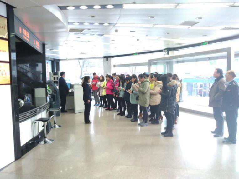 接下来,由办税服务一科吕科长带领大家到办税服务大厅进行参观,她向大家详细讲解了大厅的职能划分、功能配置、业务工作流程、自助办税服务系统等情况,并指导学生“亲身”体验了自助办税、申报纳税、领购发票、发票打印等业务流程,使大家深切体会到了办税的方便、快捷、高效以及办税人员热情的服务。