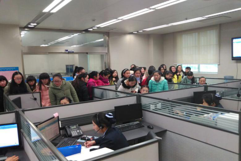 徐州市地税局纳税服务局朱局长热情地接待了我系师生,她首先为大家介绍了徐州市地税局的机构设置、行政职能等基本情况,然后带领大家来到宣传咨询科12366办税服务热线,由宣传咨询科娄科长为大家讲解了12366纳税服务热线的服务范围、工作要求、咨询方式及内容等。在这里,同学们看到数十名咨询人员正在紧张的忙碌着,通过热线电话、邮件、在线交流、QQ、微信等各种方式为公众进行详细的解答,每人的桌子上都摆着一摞厚厚的参考书,以备工作之余进行业务的学习、充电,以满足咨询服务的要求(如下图)。大家参观了12366热线坐席区,听取了12366纳税服务热线人工语音服务、发票真伪查询等服务功能的介绍,并通过拨打12366热线电话、体验12366在线咨询、应用12366知识库查询等,亲身感受12366热线“听得见的服务”和12366在线咨询“看得见的服务”。