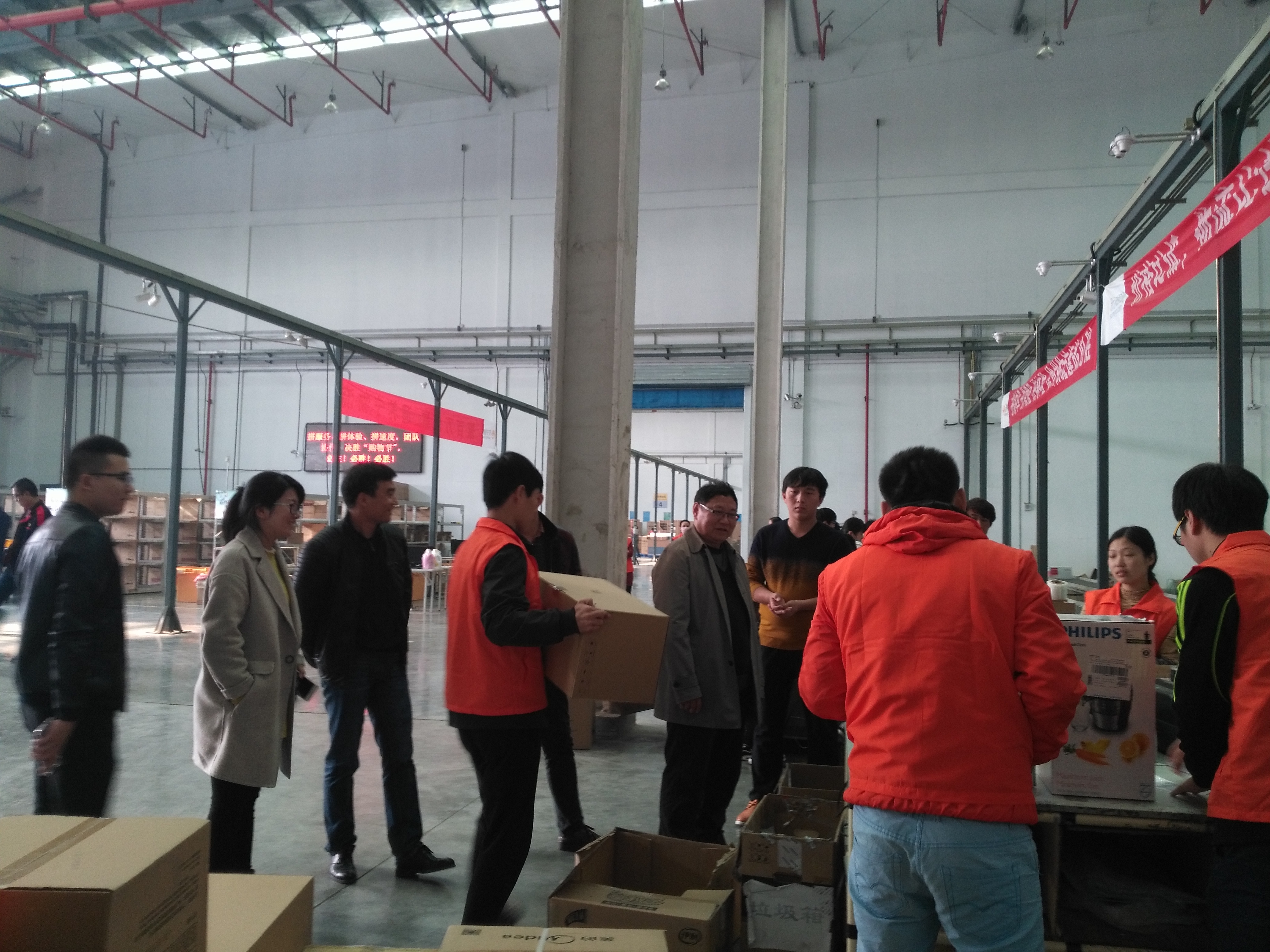 2016年11月14日,教务处处长杜蜀宾携经管系老师一行去看望在徐州苏宁易购物流中心实习的2015级电子商务和物流管理专业的学生,该物流中心提供了较为齐全的物流实训设施设备和较完善的支持苏宁易购电子商务网站订单完成功能的接单、拣货、配货、发货等流程。学生在此实习能够做到把在学校学习的理论应用到实践中去,明确了在实际的电商配送和仓储岗位的具体需求。物流实训中心的主管带老师们去看了每个工位学生的操作情况,杜处长详细询问了具体工作情况和学生的接受程度,学生很受鼓舞,也表示会认真对待并非常珍惜这次实习机会。