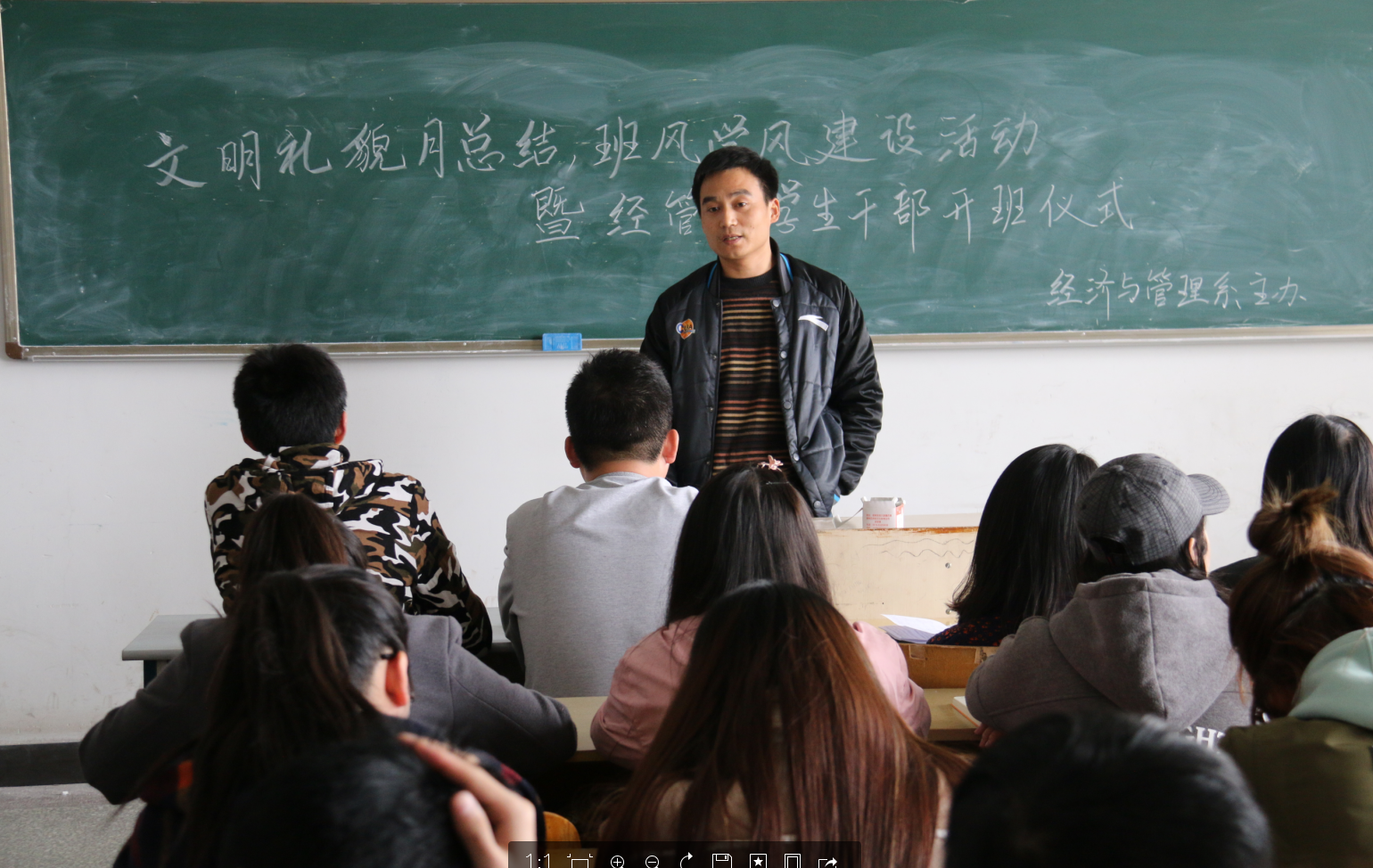 此次会议不仅是对文明礼貌月班风学风建设班仪式,也是对学生干部的培养与期望;同时使每个学生干部明确了今后的工作方向,为学生工作的顺利开展打下了扎实基础 。通过此次会议,同学们对自己的不足之处有了清醒的认识。学生干部也会以此次会议为新的起点,找准自身定位,将精力投入到学生工作中去,更好的服务同学和老师。这必将会推动今后的学生工作更上一个台阶。但伴着这些思索,相信经济与管理系学生干部工作会越来越好。