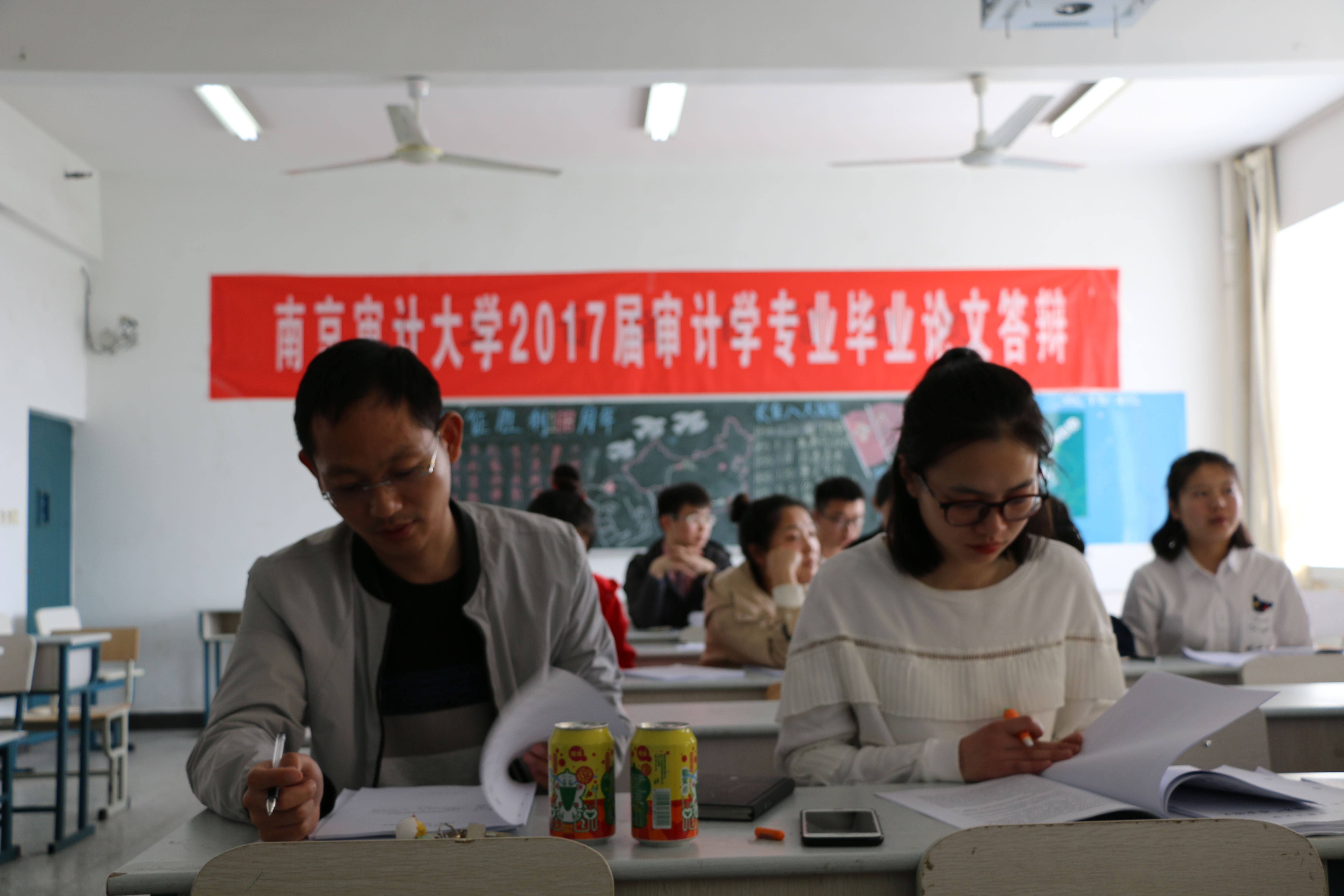 2017年4月21日上午9点,经济与管理系14级本科毕业班56同学分别在主301、主303和主305参加南京审计大学审计专业论文答辩。邀请了张道响、王道顺、冯之坦、何颜、章台、段旭、杨新利、张景荣、陈曦共9位担任答辩老师,同时南京审计大学裴文英书记和沈国琴主任莅临我校指导答辩。