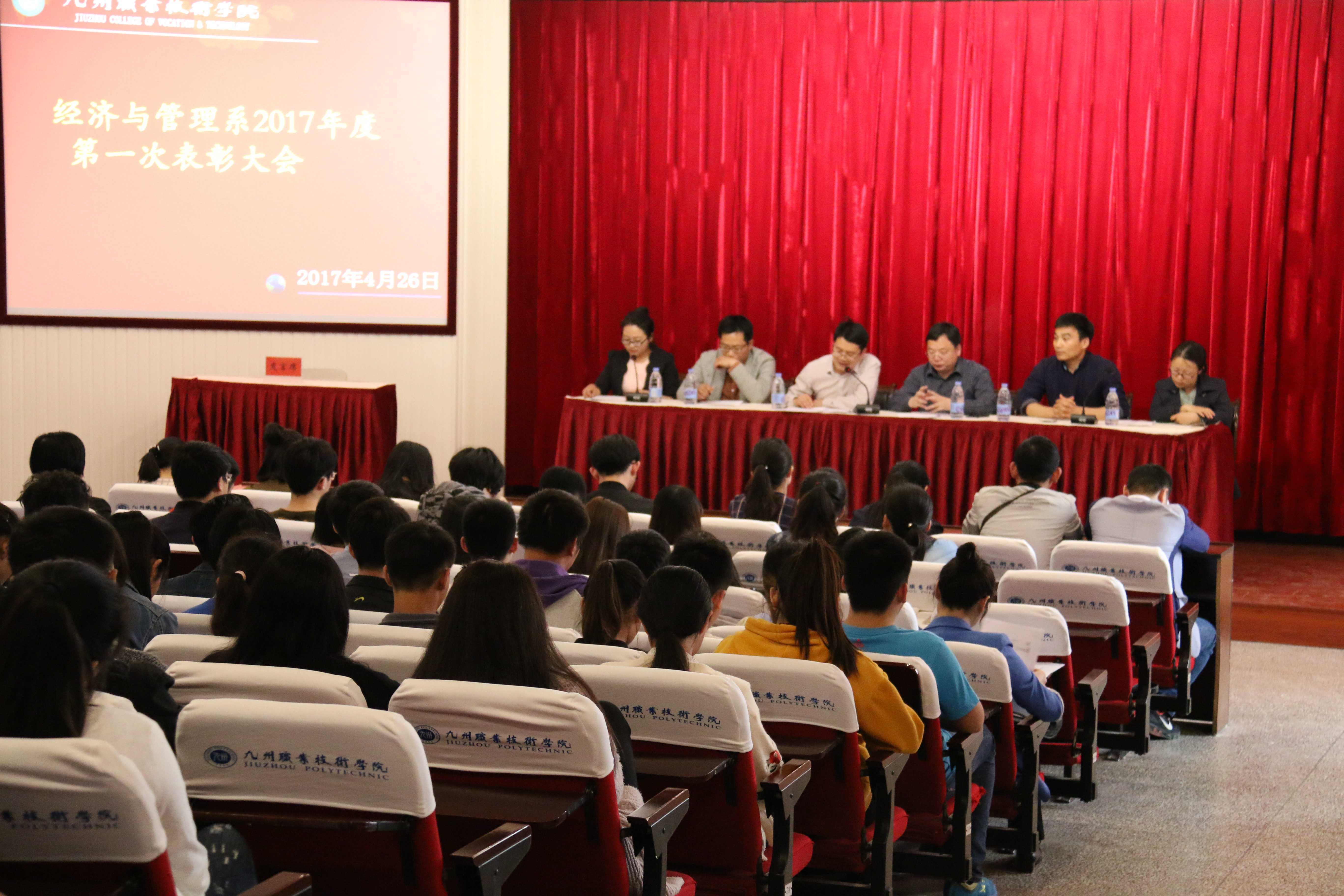 4月26日中午13:30,经济与管理系在主南二召开2017年第一次表彰大会,出席本次会议的系主任张道响、行政副主任朱存各、各专业教研室主任、辅导员老师以及部分教师,14级本科班学生代表、2015级本科班学生以及2016级会计审计班部分学生代表参加了本次会议。