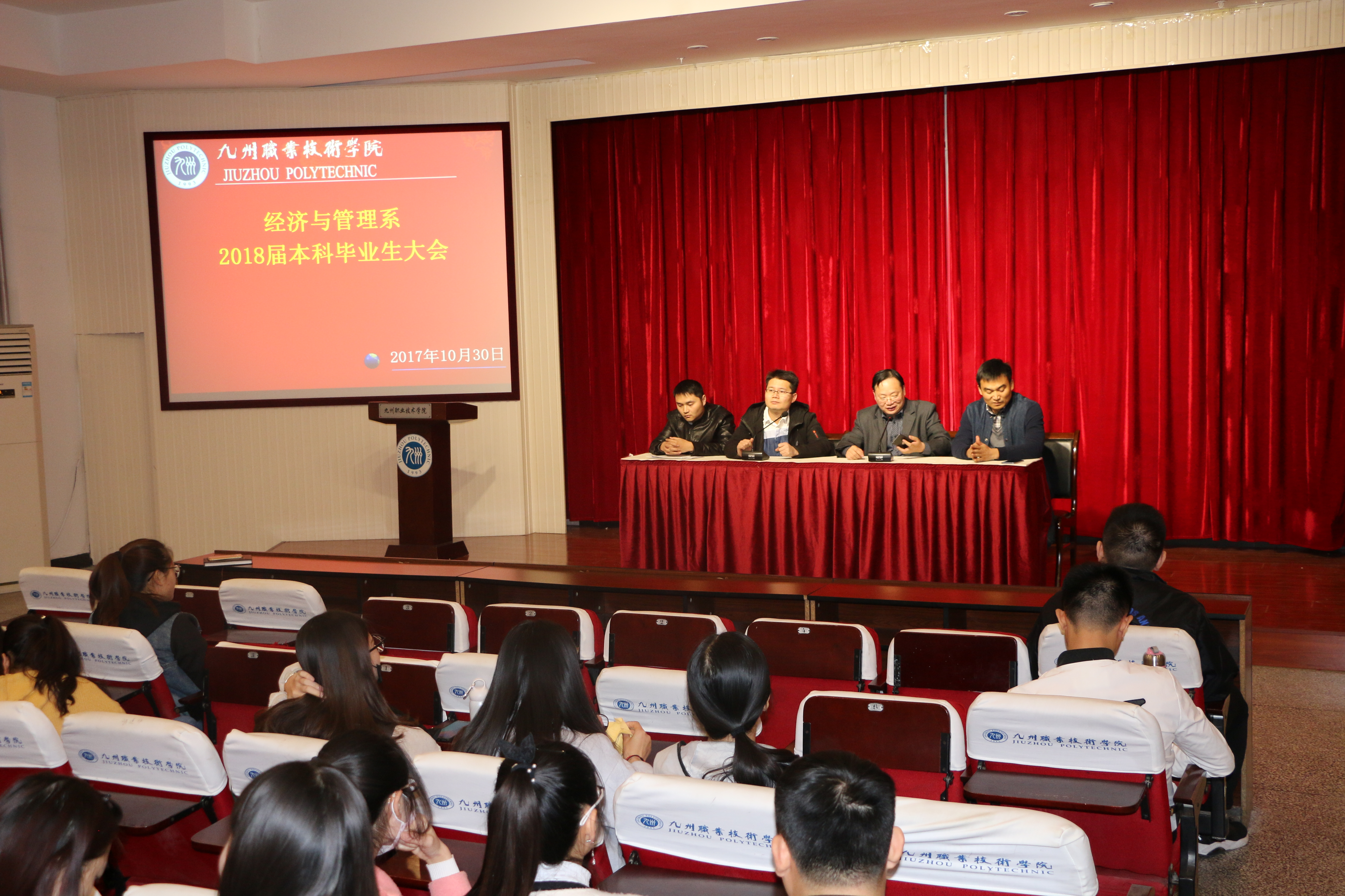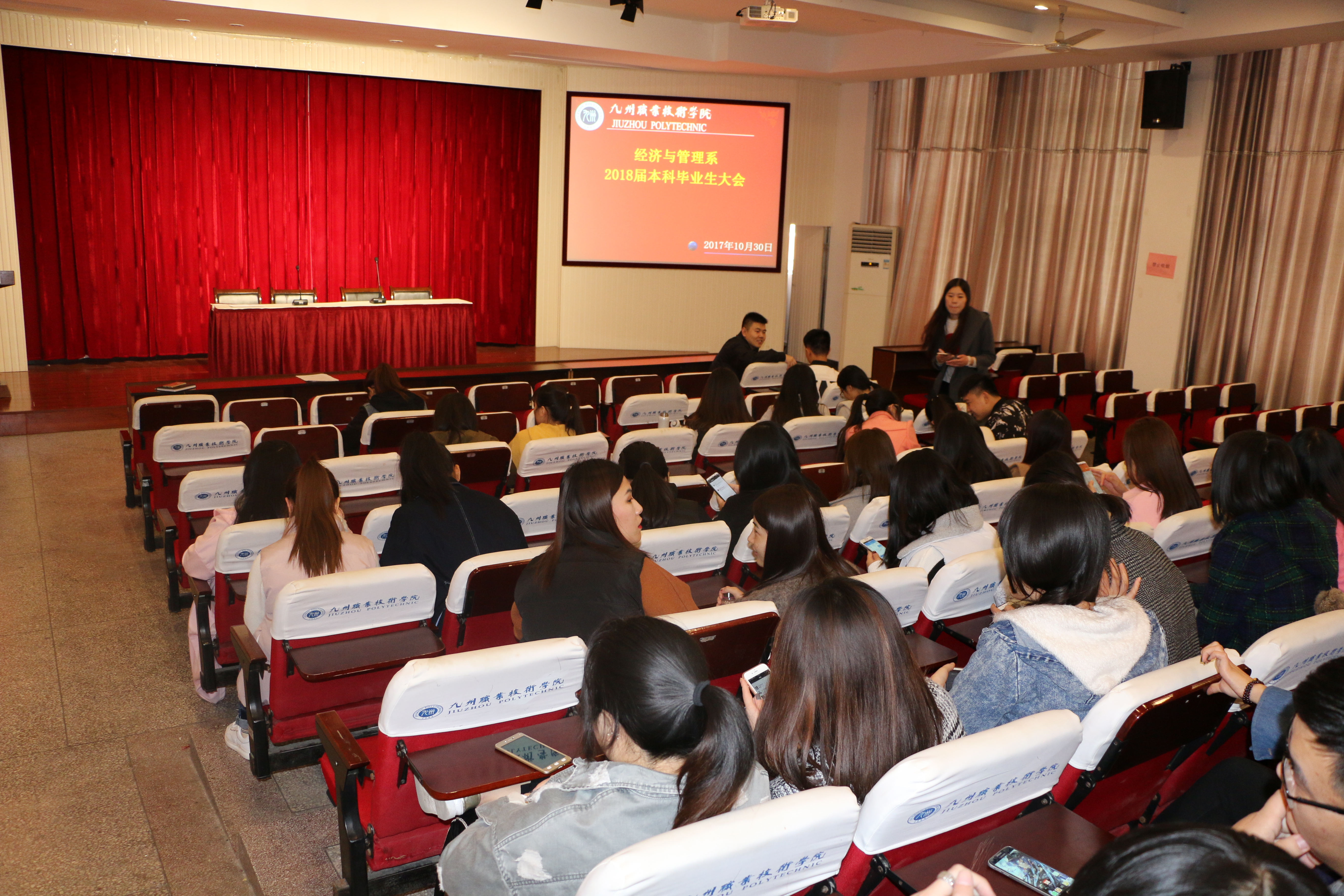 2017年10月25日下午2点在主南2召开经济与管理系2018届本科生毕业生动员大会,出席会议有系主任张道响、教学副主任冯之坦、指导教师、毕业班辅导员以及14级本科班毕业生3个班120名同学。