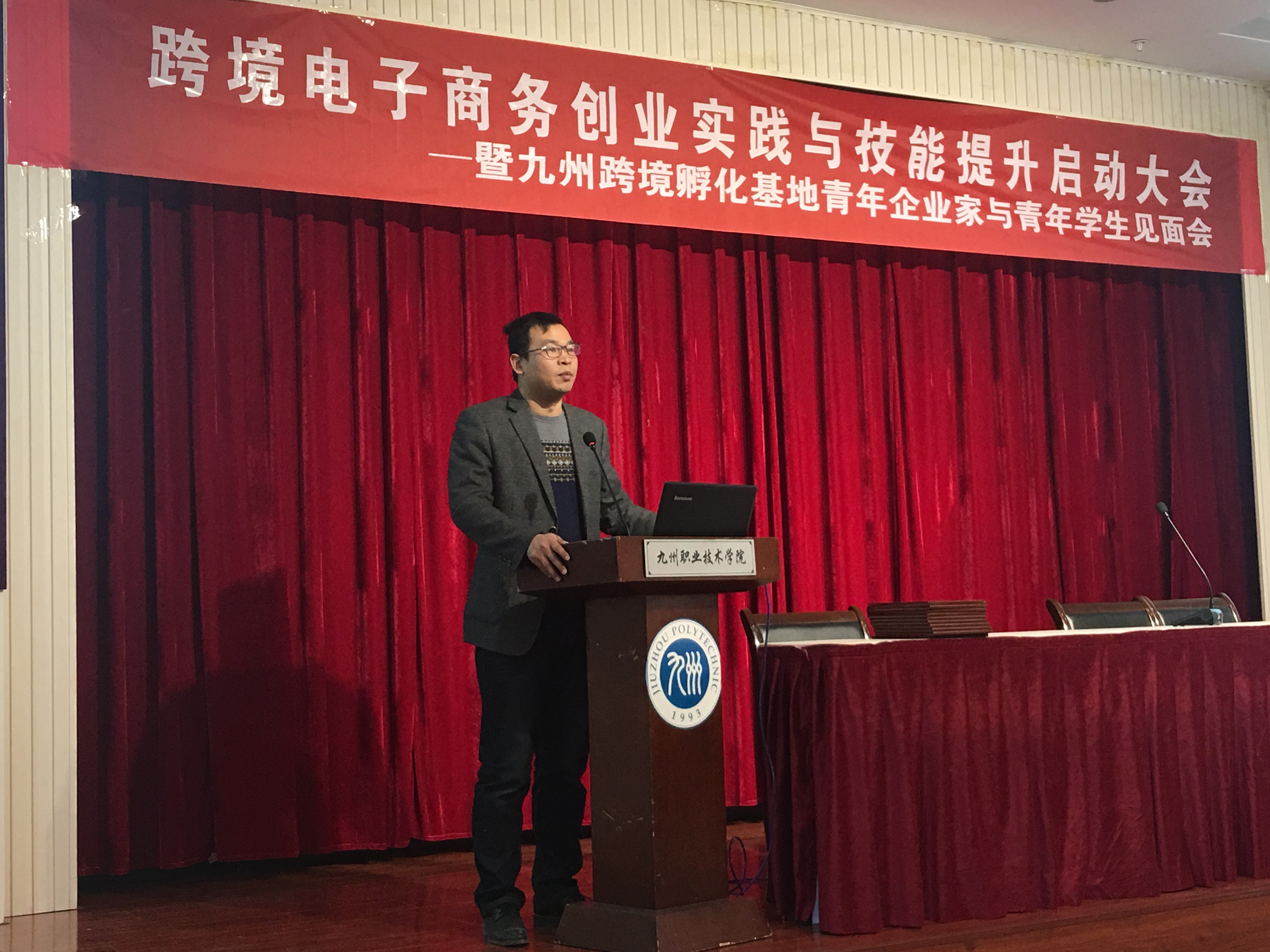 徐州鼎慧网络科技有限公司经理顾荣军在启动仪式上代表企业家,向与会领导、老师和学生解密了跨境电商的创业之道。他以自己创业的亲身经历,与大家分享了他精彩的创业故事,分析当前跨境电商的现状及面临的形势,提出青年学生要有创业的梦想和目标,总结了他实现创业梦想和目标坚持的三个原则,即不断改进方法、强化学习新知识、持之以恒不放松。
